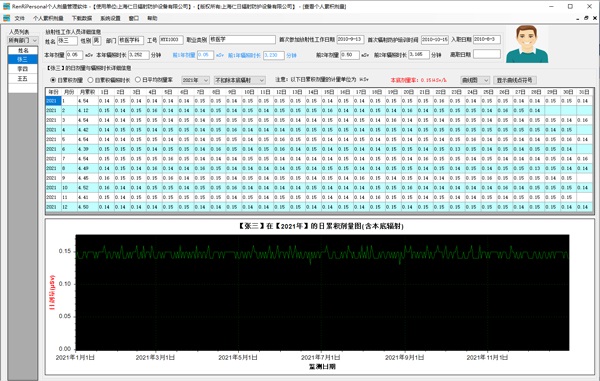 11、管理軟件:可選配強(qiáng)大的RenRiPersonal個人劑量管理軟件,軟件可計算日累積、月累積、年累積、輻照時長、日平均劑量率、扣除或不扣除本底輻射,瞬間顯示86400條/天的劑量率,以圖譜或文字的方式展現(xiàn)數(shù)據(jù);可為特定用戶提供定制開發(fā)或二次開發(fā)。